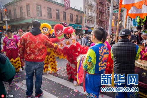 在美國各地的唐人街,節日氣氛尤其濃厚,鑼鼓震天、鞭炮齊鳴,舞獅隊伍走上街頭,祈愿人們生活紅紅火火,運氣越來越好。