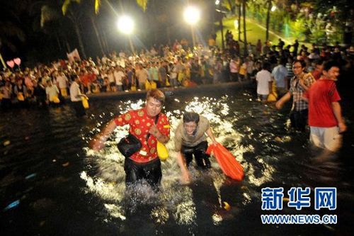 馬來西亞男女參加“拋柑接蕉”活動。新華社發 張紋綜攝