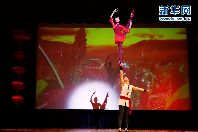 3月2日,在美國密歇根州底特律市,廣東省藝術團的演員在2018年“歡樂春節--祖國陪你過年”活動中表演雜技《肩上芭蕾》。新華網發(圖片由中國駐芝加哥總領館提供)