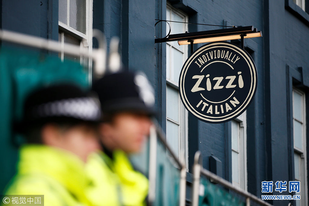 當?shù)貢r間2018年3月11日,英國索爾茲伯里市,Zizzi餐廳關(guān)閉進行調(diào)查工作。警方在威爾特郡索爾茲伯里市一家意大利餐廳發(fā)現(xiàn)神經(jīng)毒劑的痕跡,斯克里帕爾父女中毒前在那里用餐。(圖片來源:視覺中國)