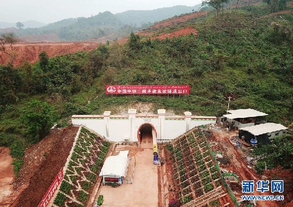 這是3月26日在老撾磨丁航拍的正在建設中的中老鐵路跨境隧道-友誼隧道。中老鐵路跨境隧道友誼隧道建設正順利推進,目前老撾段已掘進300米。新華網發(fā) 劉艾倫攝