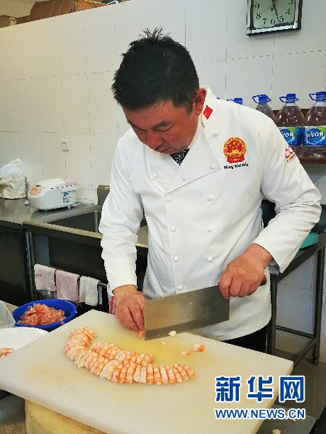 王海威在中國駐津巴布韋大使館準備食材。新華網發