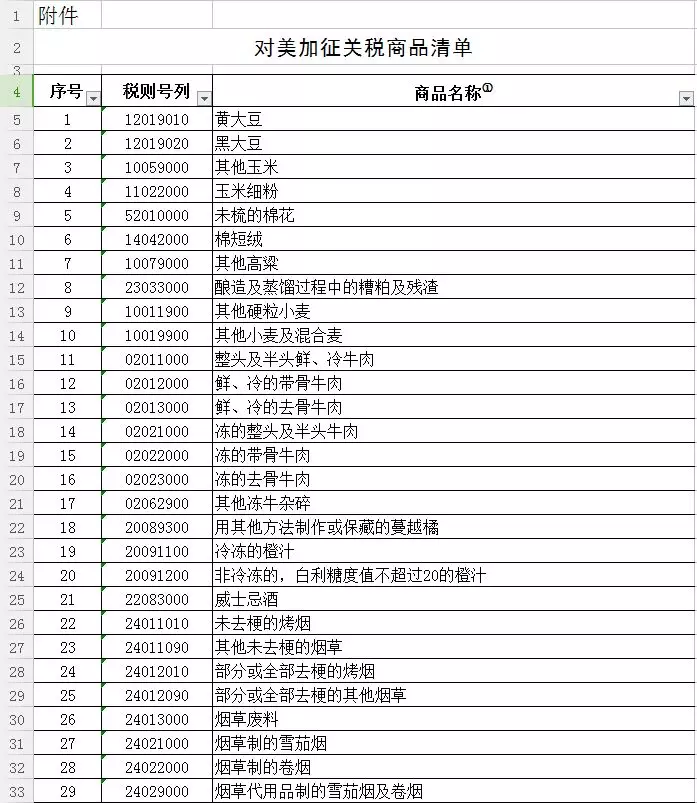 附表:對美加征關稅商品清單: