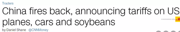 CNN發表題為《中國還擊,對美國進口的飛機、汽車和大豆加征關稅》的文章。