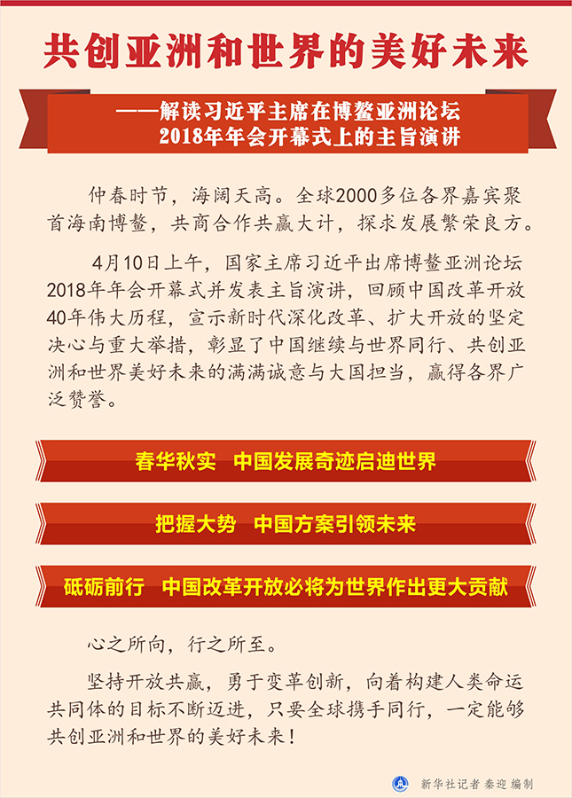 新華社海南博鰲4月10日電? 題:共創亞洲和世界的美好未來——解讀習近平主席在博鰲亞洲論壇2018年年會開幕式上的主旨演講