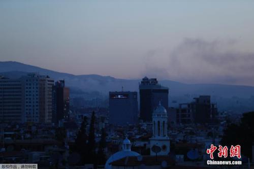 2018年4月14日,敘利亞首都大馬士革不同地區遭遇空襲后煙霧升起。