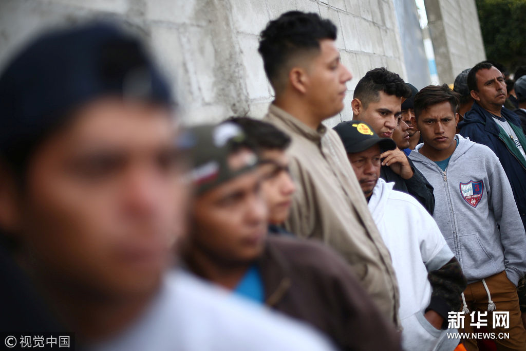 ??? 當地時間4月27日,墨西哥提華納,中美洲移民領取早餐。一批中美洲尋求避難人群抵達墨西哥北部邊陲城市提華納,距離他們的最終目的地——美國加利福尼亞州僅“一步之遙”。(圖片來源:視覺中國)