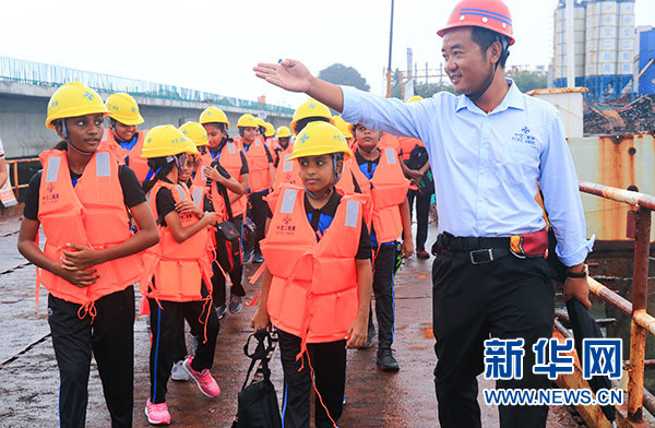 “大橋還有多久能建好?”“建橋是不是很難?”“工人叔叔們有沒有危險?”……孩子們整齊地排成兩列走在大橋上,一邊好奇地四處望著,一邊連珠炮似的向身邊的中國工人叔叔發(fā)問。