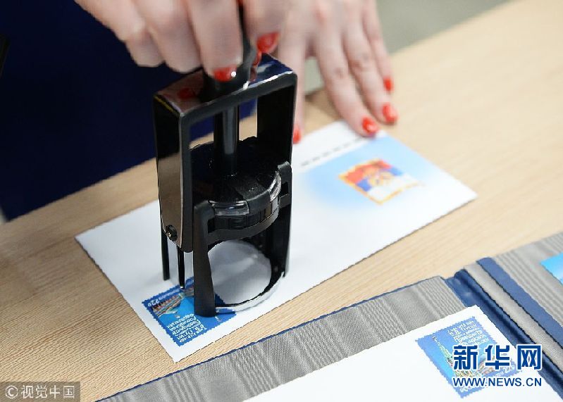 當地時間2018年5月7日,俄羅斯莫斯科,俄羅斯發行普京就職紀念郵票。(圖片來源:視覺中國)