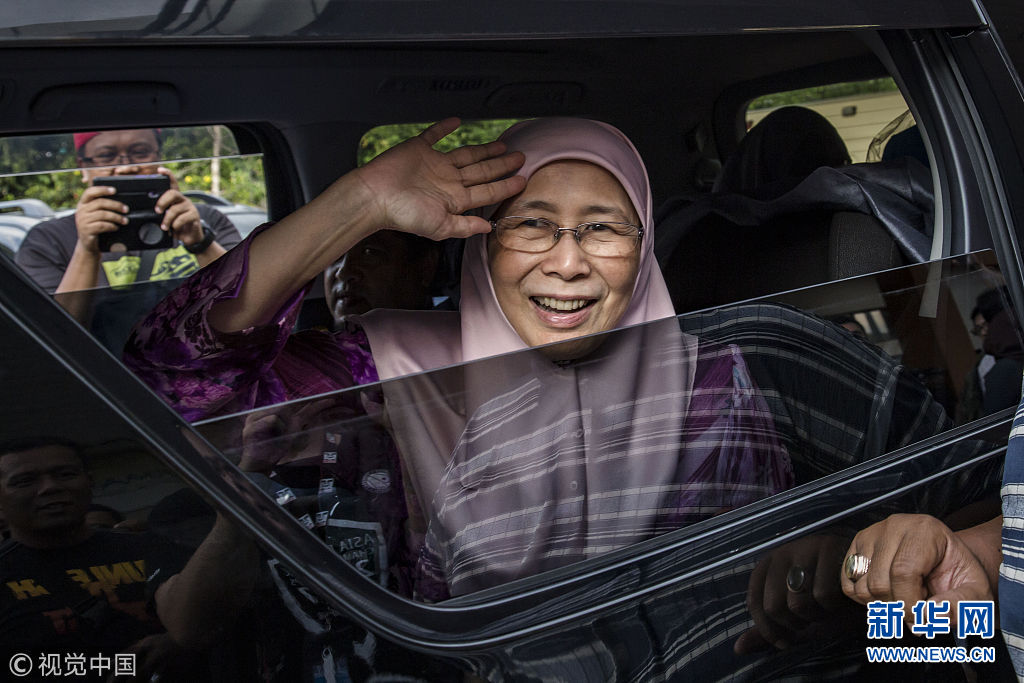 當地時間2018年5月11日,馬來西亞吉隆坡,馬來西亞前副總理安瓦爾的夫人Wan Azizah探視獄中的丈夫。馬來西亞新當選總理馬哈蒂爾表示,最高元首已經同意特赦前副總理安瓦爾。