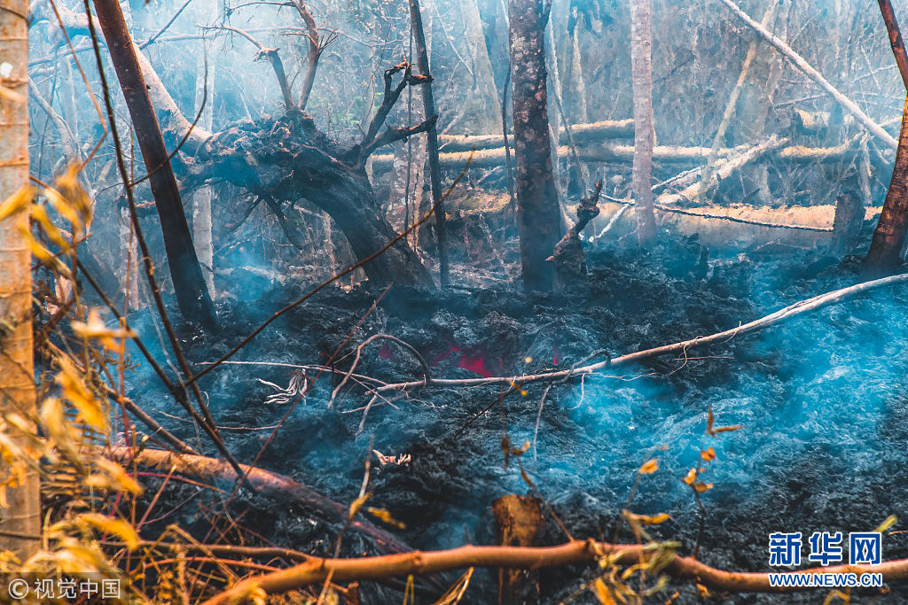5月13日,美國夏威夷,基拉韋厄火山仍處于持續噴發的狀態,火山周圍又出現了新的噴發裂縫。(圖片來源:視覺中國)
