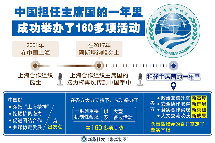 第三,注入共謀發展的新動力。青島峰會將高度重視發展問題,就完善全球治理、鞏固多邊貿易體系等問題發出響亮聲音,倡導創新、協調、綠色、開放、共享的發展理念,努力為成員國營造更加有利的外部發展環境。峰會還將通過一系列合作文件,進一步把各方政治共識轉化為合作成果。