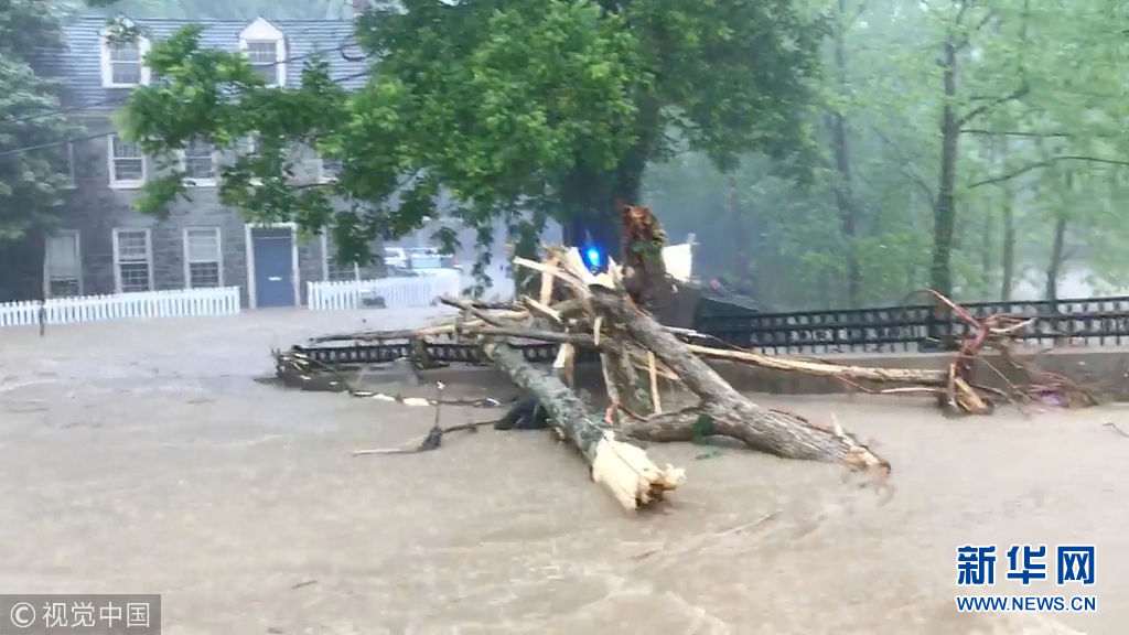 美國馬里蘭州爆發(fā)洪水 城市街道變湍急河流