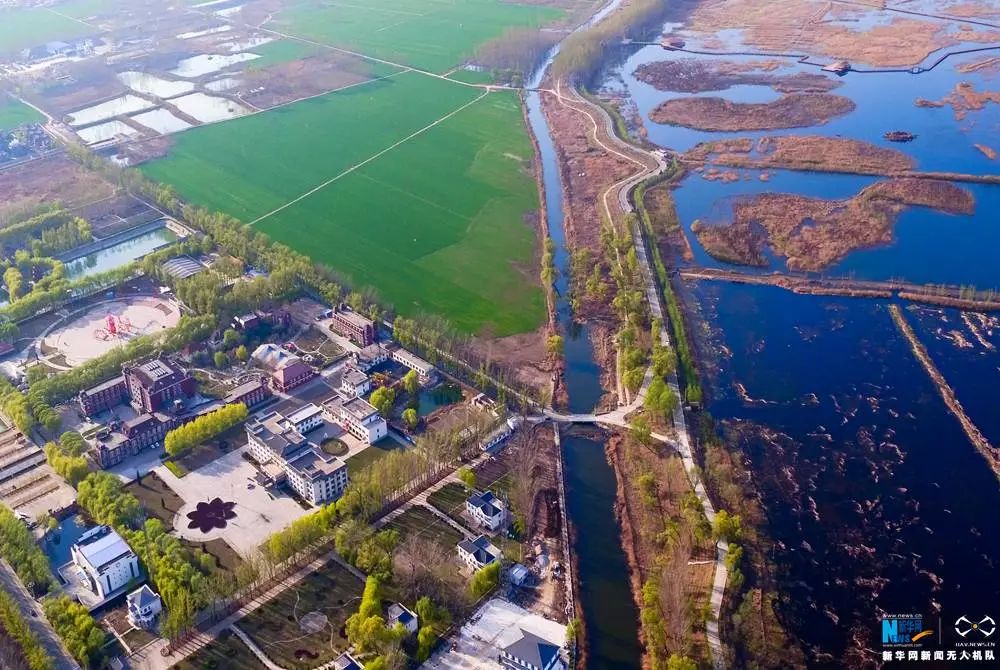 航拍白洋淀淀里村莊。新華網 張潤貞 攝