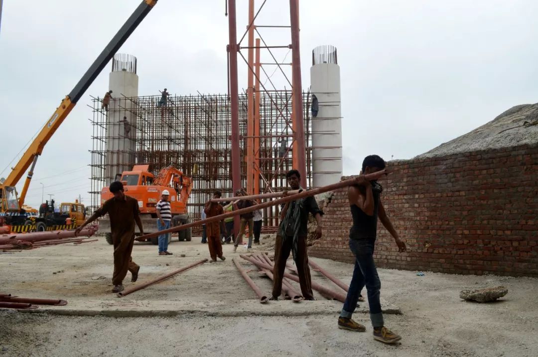 2016年7月17日,拉合爾軌道交通橙線項目是中巴經濟走廊的早期示范項目,巴基斯坦工人正在工地上工作。 新華社發