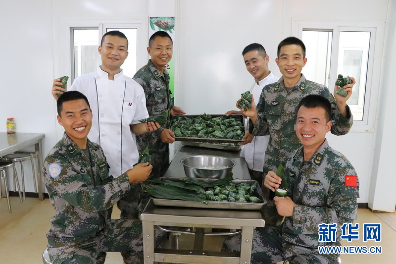 “官兵們在遠離祖國和親人的異國他鄉執行維和任務,在端午節能夠吃到粽子是官兵們的共同心愿。”炊事班長彭照陽一邊包著粽子,一邊欣喜地對記者說。