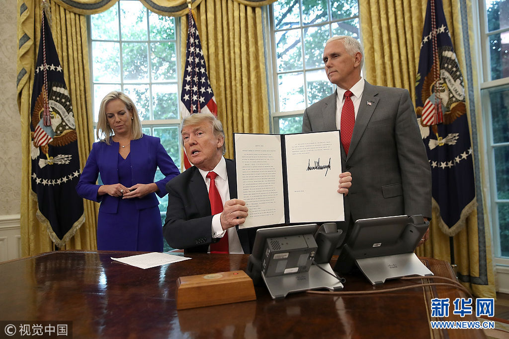 6月20日,美國(guó)華盛頓,美國(guó)總統(tǒng)特朗普撤回了此前為打擊非法移民,進(jìn)而導(dǎo)致大批兒童與父母強(qiáng)制分離的“零容忍”政策。(圖片來源:視覺中國(guó))