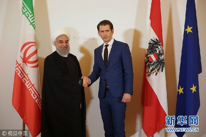 2018年7月4日,奧地利維也納,伊朗總統魯哈尼抵達奧地利進行訪問,會晤奧地利總理塞巴斯蒂安·庫爾茨。伊朗總統魯哈尼2日出發前往瑞士和奧地利訪問。他這次西歐行將重點討論伊朗核問題全面協議 (圖片來源:視覺中國)