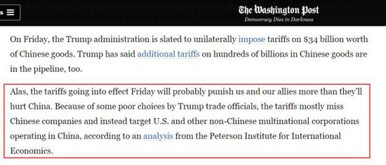 用《華盛頓郵報》自己的話說就是:“因為特朗普那些貿(mào)易官員的失策,這些制裁性關(guān)稅并不會打擊到多少中國企業(yè),反而把美國等其他非中國的跨國公司的在華分部當(dāng)作了打擊對象”。