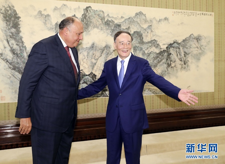 在會見舒凱里時,王岐山表示,埃及是第一個承認(rèn)新中國的阿拉伯國家和非洲國家。近年來,在習(xí)近平主席和塞西總統(tǒng)的親自引領(lǐng)下,中埃關(guān)系持續(xù)穩(wěn)定發(fā)展。中國依然是發(fā)展中國家,發(fā)展不平衡不充分是我們面對的主要矛盾。中方愿同埃方加強各領(lǐng)域務(wù)實合作,使新時期中埃全面戰(zhàn)略伙伴關(guān)系取得更多成果,并對進(jìn)一步促進(jìn)中阿、中非關(guān)系發(fā)揮作用。