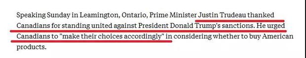 第三,大是大非上一定要團結一致。一說到團結,有的人總會聯想過于豐富:要么認為這是要老百姓放棄自己的思考,要么認為必須通過極端方式表達自己洶涌的激情——我們印象里一向溫和的加拿大,這次是怎么做的?用美聯社報道的話:特魯多在利明頓市演講時表示:感謝加拿大民眾團結一致反對特朗普的制裁,并鼓勵民眾根據自己的實際情況做出要不要買美國產品的選擇。特魯多為什么這樣說?事實上,自從G7之后特朗普攻擊特魯多“軟弱”“虛偽”以來,推特上“購買加拿大產品”“抵制美國貨”“抵制美國”“擺脫川普”等話題就在不斷升溫,很多加拿大人調整了消費習慣,轉而購買自己國家的產品。網友們的這些抵制活動,被特魯多稱為是一股“愛國熱情”。
