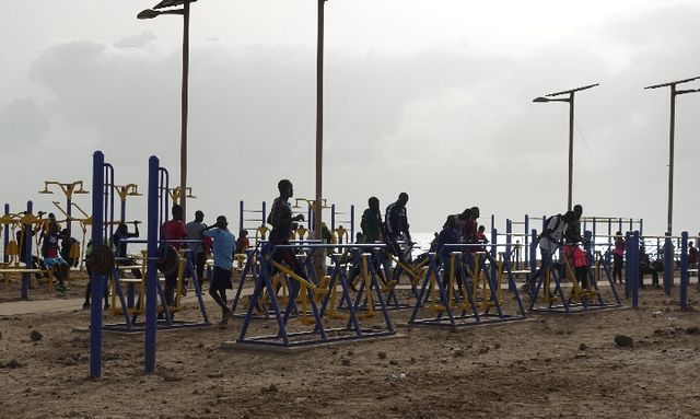 最能感受到如此“中國(guó)熱”之處,是在達(dá)喀爾濱海大道的健身公園。落日余暉下,上千民眾在這里做著各種健身活動(dòng),跳躍、奔跑、負(fù)重、伸展……場(chǎng)面可以用“熱浪翻滾”來(lái)形容。值得一提的是,公園里數(shù)百套藍(lán)黃色相間的健身器械都是中國(guó)捐贈(zèng)的。