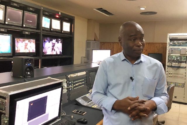 2018年7月19日,塞內(nèi)加爾國(guó)家電視臺(tái)新聞部主任達(dá)哈·巴在工作間接受記者采訪。(新華社記者孟娜攝)