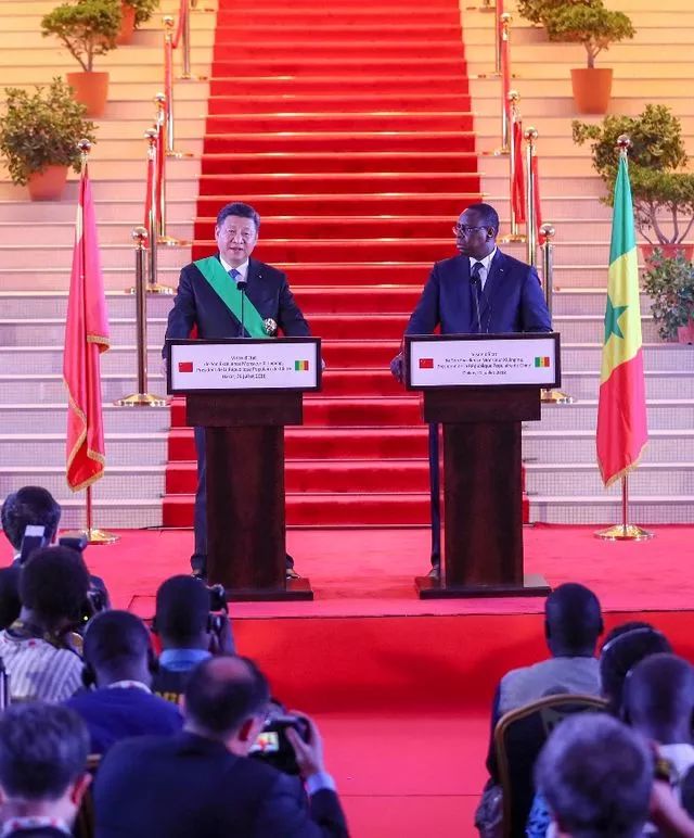 特殊禮遇,是盛情,更是敬重。兩位領導人會談后共見記者時,薩勒總統直抒胸臆:來我國進行訪問的是一位杰出領袖,習主席在發展領域有很多經驗,中國在他的帶領下正大踏步前行,我想對習主席、對中國人民說,塞內加爾人民尊重你們、敬重你們。