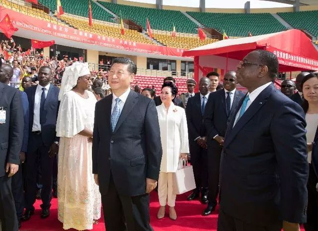 當地時間21日下午3時25分許,習近平主席乘坐的專機抵達機場。塞內加爾總統薩勒和夫人瑪麗梅熱情迎接,歡迎人群一路綿延。