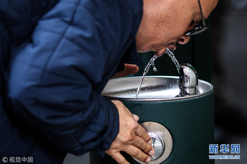 當(dāng)?shù)貢r(shí)間2018年8月28日,英國(guó)倫敦,民眾在公共飲水機(jī)旁飲水。倫敦市長(zhǎng)近日引進(jìn)了20個(gè)新的公共飲水機(jī),鼓勵(lì)人們自帶杯子取水喝,從而減少塑料垃圾。 (圖片來源:視覺中國(guó))
