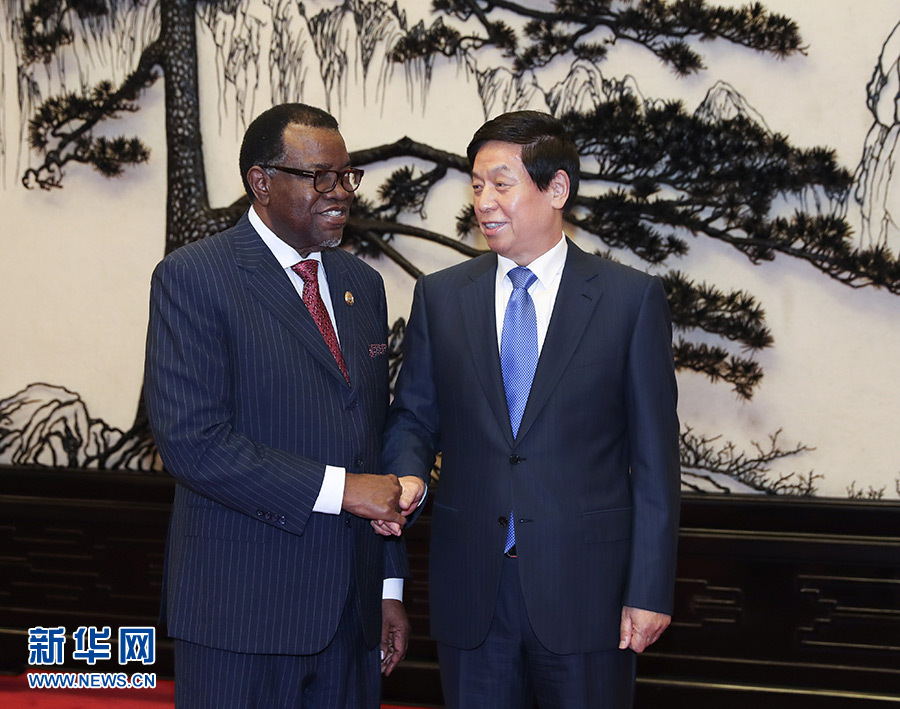9月2日,全國(guó)人大常委會(huì)委員長(zhǎng)栗戰(zhàn)書在北京人民大會(huì)堂會(huì)見納米比亞總統(tǒng)根哥布。 新華社記者 龐興雷 攝