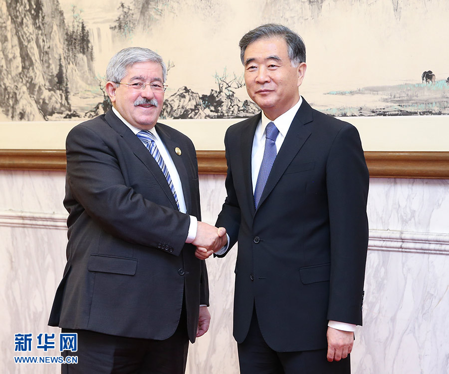 9月5日,全國政協主席汪洋在北京釣魚臺國賓館會見阿爾及利亞總理烏葉海亞。 新華社記者 姚大偉 攝