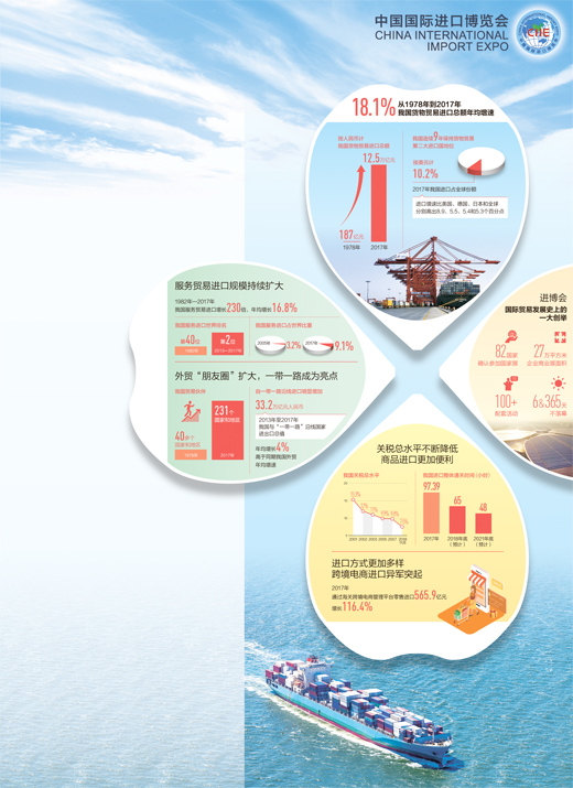 2017年,我國是增長最快的全球主要進口市場,進口增速比美國、德國、日本和全球分別高出8.9、5.5、5.4和5.3個百分點,為世界各國企業提供了廣闊的市場和寶貴的合作契機。
