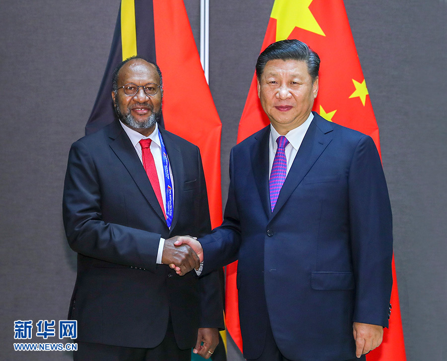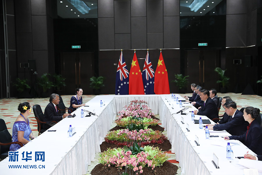 11月16日,國(guó)家主席習(xí)近平在莫爾茲比港分別會(huì)見(jiàn)建交太平洋島國(guó)領(lǐng)導(dǎo)人。這是習(xí)近平會(huì)見(jiàn)庫(kù)克群島總理普納。 新華社記者 丁林 攝
