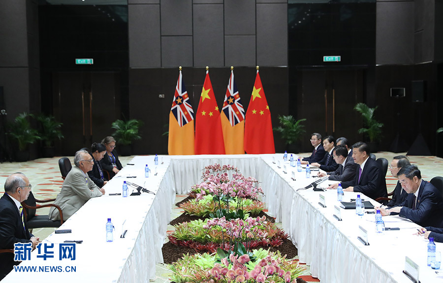 在會(huì)見(jiàn)紐埃總理塔拉吉時(shí),習(xí)近平強(qiáng)調(diào),中方將繼續(xù)秉持正確義利觀和真實(shí)親誠(chéng)理念發(fā)展同紐埃關(guān)系。中方歡迎紐方積極參與“一帶一路”合作,更好實(shí)現(xiàn)同域內(nèi)外國(guó)家互聯(lián)互通。中方愿同紐方加強(qiáng)氣候變化南南合作以及海洋、環(huán)境保護(hù)等方面合作,推進(jìn)綠色、低碳、可持續(xù)發(fā)展。