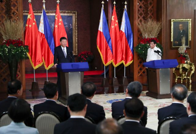 11月20日,國家主席習近平在馬尼拉同菲律賓總統杜特爾特舉行會談。這是會談后,兩國元首共同會見記者。新華社記者謝環馳攝