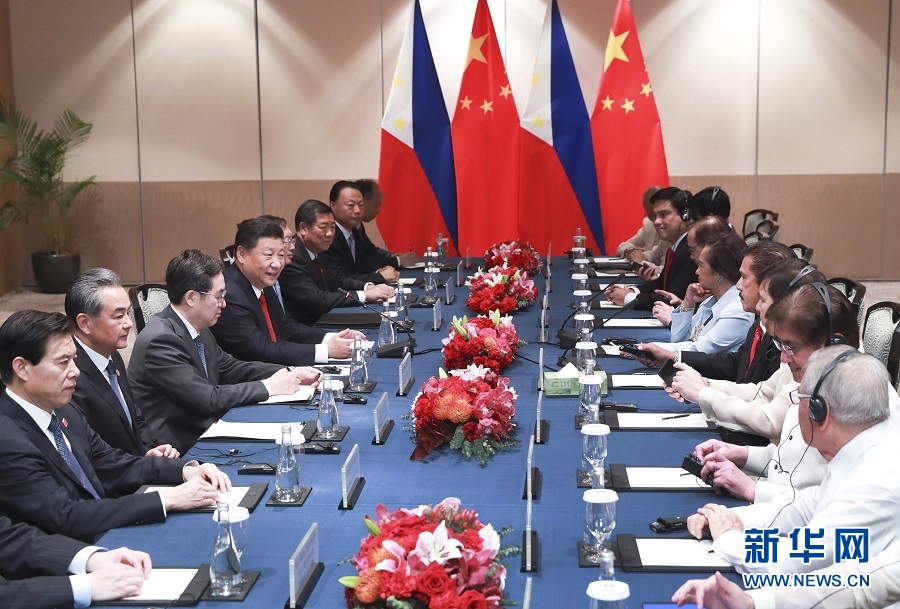 11月21日,國(guó)家主席習(xí)近平在馬尼拉會(huì)見菲律賓眾議長(zhǎng)阿羅約和參議長(zhǎng)索托。 新華社記者 龐興雷 攝