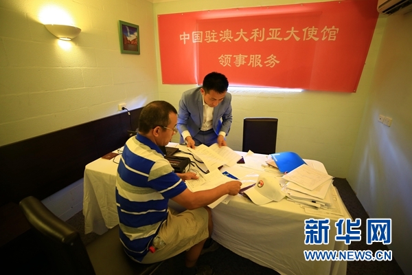 23日,中國駐澳大利亞使館的五名官員從首都堪培拉來到4000公里以外位于澳大利亞北部的港口城市達(dá)爾文,就領(lǐng)事保護(hù)和教育等方面的問題同當(dāng)?shù)亓魧W(xué)生和華僑華人進(jìn)行交流并現(xiàn)場辦公。