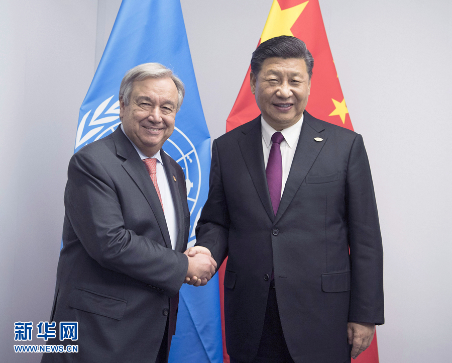 ——會見聯合國秘書長古特雷斯,表明中國堅持多邊主義、支持聯合國發揮更大作用的堅定態度。