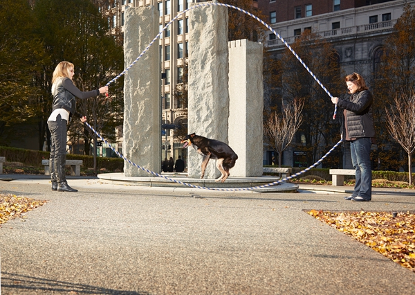 小狗Geronimo也是被Samantha救助并領(lǐng)養(yǎng)的狗。Geronimo是一只邊境牧羊犬和卡爾比犬的混種母犬,性格活潑,是“1分鐘一只狗完成最多的交互跳繩”的世界紀(jì)錄保持者。經(jīng)過六個(gè)星期的訓(xùn)練,Samantha發(fā)現(xiàn)Geronimo變得難以配合訓(xùn)練,于是她想出增加一根跳繩的方法。這使她很快就發(fā)現(xiàn)Geronimo簡直是一個(gè)交互跳繩天才!