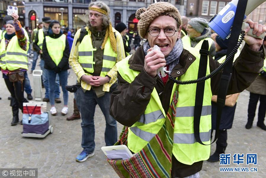 當地時間12月15日,荷蘭阿姆斯特丹,當地爆發“黃背心”抗議活動。(圖片來源:視覺中國)