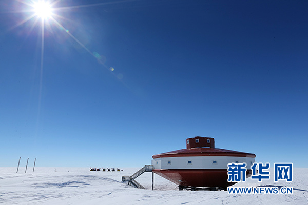 12月25日,中國南極科考隊內陸隊抵達泰山站。從遠處看,泰山站的鋼結構主體既像一個中國紅燈籠,又像一個降落在冰雪世界的“不明飛行物”。進入其中,透過窗戶向外張望時,環形的建筑結構使視野十分開闊。 新華社記者 劉詩平 攝