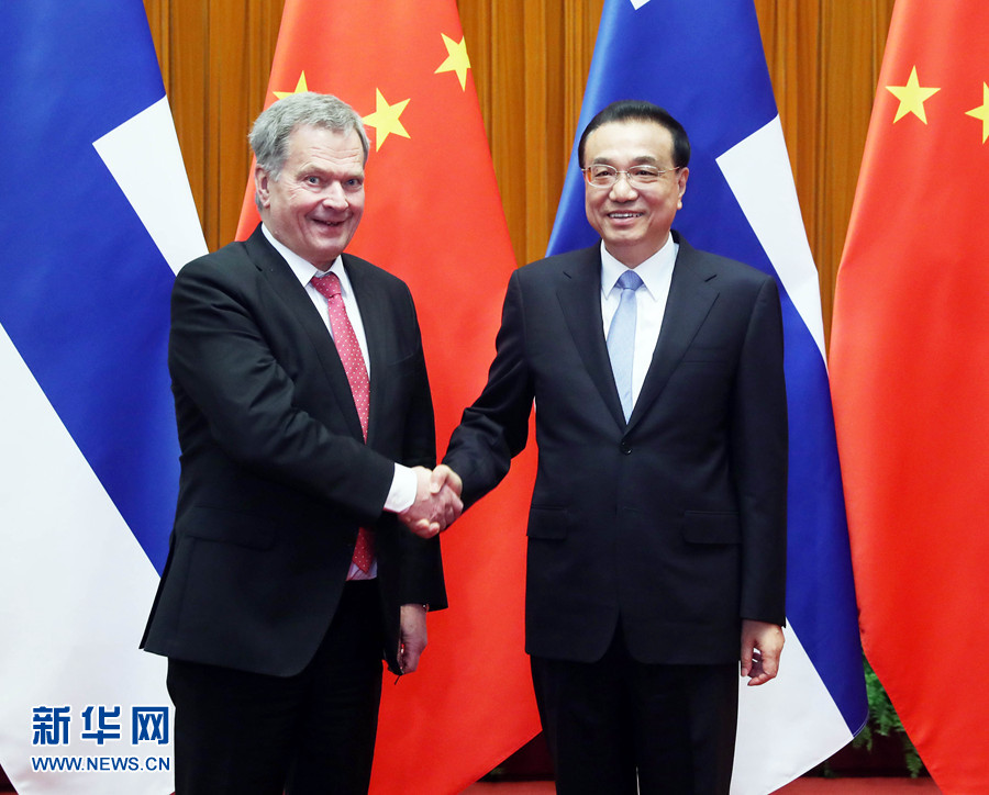 李克強表示,中芬關系長期以來保持良好穩定發展,走在中國同西方國家關系的前列。昨天,習近平主席同總統先生舉行了富有成果的會談,共同規劃兩國關系未來發展。中方愿同芬方繼續努力,推動中芬合作取得更多新成果,為中芬關系不斷注入新動力。