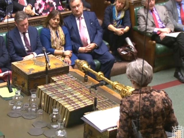 1月21日,在英國倫敦,英國首相特雷莎·梅(前)在議會下院講話。(新華/美聯)