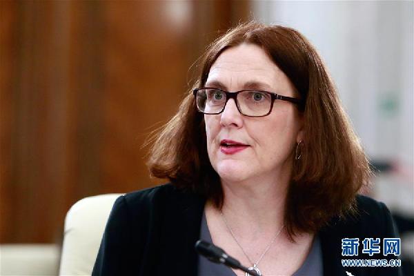 2月22日,在羅馬尼亞布加勒斯特,歐盟貿(mào)易委員馬爾姆斯特倫在歐盟國家貿(mào)易部長非正式會(huì)議上講話。新華社發(fā)(克里斯泰爾 攝)