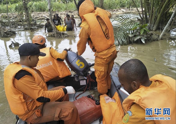 3月17日,在印度尼西亞巴布亞省森塔尼,搜救人員開展搜救行動。新華社發