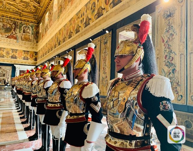 3月22日,國家主席習近平在羅馬同意大利總統馬塔雷拉舉行會談。會談前,馬塔雷拉總統為習近平舉行隆重歡迎儀式。圖為意大利禮兵在總統府列隊準備迎接習近平。(新華社記者蘭紅光攝)