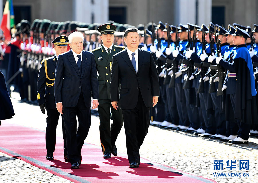 3月22日,國家主席習近平在羅馬同意大利總統馬塔雷拉舉行會談。會談前,馬塔雷拉總統為習近平舉行隆重歡迎儀式。(新華社記者謝環馳攝)