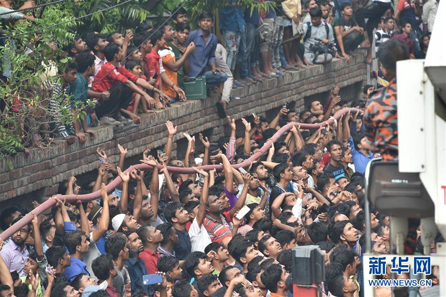 3月28日,在孟加拉國首都達卡,消防人員解救被困民眾。 新華社發(薩利姆·禮薩攝)