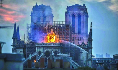 盡管火災現場周邊的道路已經被封鎖,但仍有上千的巴黎市民和游客聚集在警戒線周圍,不少人自發唱起祈禱歌曲,人們的臉上寫滿了痛心和遺憾,但并沒有失去希望。有巴黎市民向記者表示:“巴黎的城市銘言就是‘歷經風浪,永不沉沒’,盡管這場大火是一次大的災難,但我相信在全法國和全世界人民的幫助下,圣母院一定能夠重新煥發出往日的風采。”